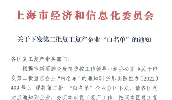 j9九游会官方科技已列入上海市经信委复工复产“白名单”,正在稳步落实相关事宜,在保障安全的基础上推进全面复工。